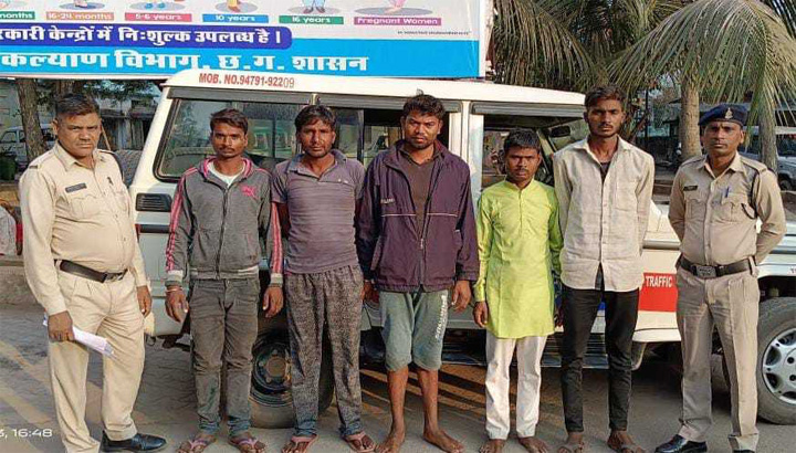 पुलिस बल के साथ मारपीट एवं शासकीय कार्य में बाधा डालने वाले 5 आरोपी गिरफ्तार