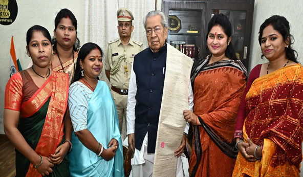 रायपुर। राज्यपाल विश्वभूषण हरिचंदन से सोमवार को राजभवन में प्रदेश उत्कल गांडा महिला महामंच रायपुर की अध्यक्ष सावित्री जगत एवं अन्य पदाधिकारियों ने सौजन्य भेंट की। इस दौरान माह अक्टूबर में शहीद स्मारक भवन रायपुर में आयोजित नवाखाई उत्सव में शामिल होंने का आग्रह राज्यपाल से किया।
