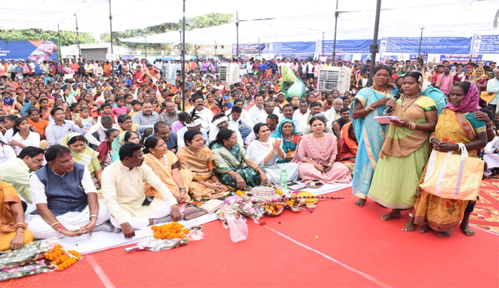 इस अवसर पर कलेक्टर नम्रता गाँधी ने जिले में प्रधानमंत्री जनमन योजना के तहत किये जा रहे कार्यों पर विस्तृत प्रकाश डाला। उन्होंने कहा कि शासन कि सभी योजनाओं का जमीनी स्तर पर क्रियान्वयन कर इसका लाभ आप लोगो तक पहुंचना हैं, इस काम में आप सभी का सहयोग अपेक्षित हैं। कलेक्टर सुश्री गाँधी ने कमार समाज के पदाधिकारियो, प्रतिनिधियों सहित उपस्थित कमार लोगों को शासन कि योजनाओं का लाभ लेकर समाज को आगे बढ़ाने और नई दिशा व दशा प्रदान करने कि शपथ कमारी बोली में दिलाई। देश के प्रधानमंत्री श्री नरेन्द्र मोदी ने वीडियो कॉन्फ्रेंसिंग के जरिये उन्हें संबोधित भी किया।