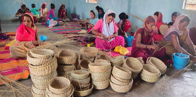 कोटानपानी ग्राम के प्रत्येक घर में तैयार हो रही है छिंद-कांसा की आकर्षक टोकनी एवं अन्य वस्तुएं
