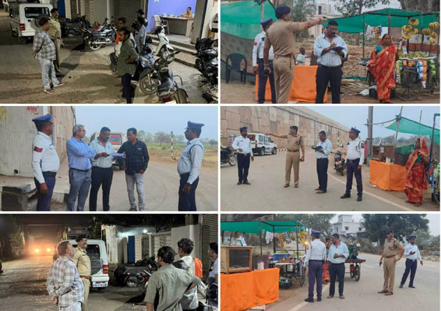 ब्रीज के पास रोड किनारे गांव के लोगो के द्वारा चाय ठेला, फल दुकान, लगाकर अतिक्रमण कर मार्ग को बाधित करते पाये गये जिन्हे ब्रीज के पास रोड किनारे से अपने दुकान को हटाने समझाईश दिया गया। इसी क्रम में औयोगिक वार्ड अग्रसेन भवन के आसपास मार्ग किनारे गैराज मालिको द्वारा अपने वाहनो को रोड किनारे खडे करने से आने जाने वाले लोगो को परेशानी का सामना करना पड रहा था जिनके सुगम आवागमन हेतु गैराज मालिको को अपने वाहन को गैराज में ले जाकर खड़े करने एवं आम रास्ते में वाहन पार्किंग नहीं करने निर्देशित किया गया।