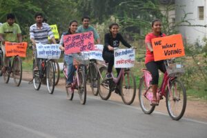 धमतरी। आगामी लोकसभा निर्वाचन 2024 के मद्देनजर मतदाताओं को अपने मताधिकार का प्रयोग करने आज सुबह कलेक्टोरेट परिसर से सायकल रैली का आयोजन किया गया। सायकल रैली में जिले के अधिकारी-कर्मचारी, महाविद्यालीयन छात्र-छात्राएं, गणमान्य नागरिक शामिल हुए और युवा मतदाताओं को मतदान प्रक्रिया से जुड़ने के लिए प्रेरित किया। एसडीएम धमतरी डॉ.विभोर अग्रवाल और नगरनिगम आयुक्त श्री विनय पोयाम ने सायकल रैली को हरी झंडी दिखाकर रवाना किया। यह रैली कलेक्टोरेट से शुरू होकर गोकुलपुर चौक, विंध्यवासिनी मंदिर, सदर बाजार होते हुए घड़ी चौक पहुंची। इस अवसर पर गोल बजार में उपस्थित सब्जी विक्रेताओं और घड़ी चौक में काम की तलाश कर रहे मजदूर भी स्व प्रेरणा से इस रैली में शामिल हुए और काम से पहले अपने मताधिकार का प्रयोग करने की बात कही।