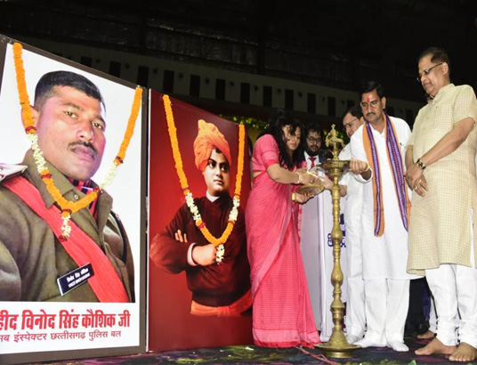 शहीद विनोद सिंह स्मृति ट्रस्ट के अध्यक्ष श्री दिलेंद्र कौशिल ने स्वागत भाषण दिया। उन्होंने शहीद विनोद कौशिक का जीवन परिचय भी दिया। सीजी पुलिस में वे उप निरीक्षक के पद पर कार्यरत थे।वर्ष 2018 में नारायणपुर जिले में नक्सलियों से लोहा लेते हुए वीर गति को प्राप्त किए। शहर के चिंगराज पारा निवासी नेत्र से दिव्यांग कलाकार भाई बहन श्री पृथ्वीराज व पूजा ने भजनों और देशभक्ति पूर्ण गानों की शानदार प्रस्तुति से सबका मन मोह लिया।