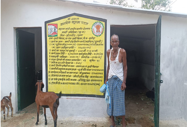 जांजगीर-चांपा जिले के बलौदा विकासखण्ड की ग्राम पंचायत हरदीविशाल निवासी कांशीराम अपने परिवार चलाने के लिए वह अपने खेती-किसानी पर ही निर्भर था और अपने परिवार का गुजारा चलाता था। इसके अलावा उनकी आय का कोई अन्य जरिया नहीं था। फिर कुछ साल पहले उन्होंने बकरी पालन कार्य शुरू किया और कम समय में ही बकरी पालन के व्यवसाय से अच्छा लाभ अर्जित करने लगा, लेकिन उनके सामने एक बड़ी समस्या खड़ी थी कि जिस घर में वह बकरी पालन का कार्य करता था, वह मिट्टी का था और जर्जर हो चुका था। ऐसे में बारिश और ठंड में बकरियों को सुरक्षित रखना उनके लिए मुश्किल हो रहा था। बीमारियों के चलते कई बार बकरियों की मृत्यु भी हो जाती थी, जिससे उन्हें बहुत अधिक नुकसान उठाना पड़ता था, जितनी भी आमदनी बकरीपालन से होती थी, उससे ही गुजरा बसर चल रहा था।