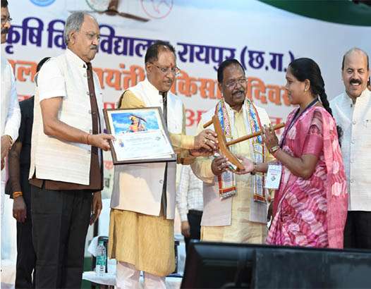 रायपुर। मुख्यमंत्री विष्णु देव साय ने कहा है कि गौ-आधारित प्राकृतिक खेती किसानों के लिए खुशहाली और समृद्धि का रास्ता खोलेगी। जैविक खेती से जुड़कर धान के कटोरे के किसान समृद्ध होंगे। जैविक एवं प्राकृतिक खेती पर स्थानीय इंदिरा गांधी कृषि विश्वविद्यालय में आयोजित कार्यशाला को सम्बोधित कर रहे थे। उन्होंने इस मौके पर भगवान श्री बलराम जी की जयंती भाद्रपद माह की शुक्ल पक्ष षष्ठी तिथि को हर वर्ष किसान दिवस के रूप मनाने का आह्वान भी किया। गौ-आधारित जैविक और प्राकृतिक खेती करने वाले तथा इस क्षेत्र में किसानों को प्रेरित करने वाले उत्कृष्ट किसानों को सम्मानित किया।