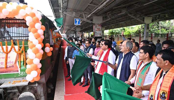 रायपुर। मुख्यमंत्री विष्णुदेव साय के पहल पर शुरू की गई श्री रामलला दर्शन योजना के तहत चलाई जा रही विशेष ट्रेन आज रायपुर रेल्वे स्टेशन के प्लेटफार्म नंबर-07 से रवाना हुई। राजस्व मंत्री टंक राम वर्मा ने हरी झंडी दिखाकर ट्रेन को रवाना किया। इस विशेष ट्रेन से 850 श्रद्धालुओं का जत्था अयोध्या धाम के लिए रवाना हुआ। इस यात्रा से श्रद्धालुओं में भारी उत्साह है। श्रद्धालुगण भगवान राम का जय-जयकार करते हुए अयोध्या धाम के लिए निकल चुके हैं। ट्रेन में श्रद्धालु भजन-कीर्तन करते हुए भक्तिमय माहौल में श्री रामलला के दर्शन को जा रहे है।