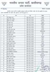 रायपुर। भारतीय जनता पार्टी छत्तीसगढ़ के नई प्रदेश कार्यसमिति की सूची जारी कर दी गई है. राष्ट्रीय अध्यक्ष नितिन नबीन ने संगठनात्मक संतुलन को ध्यान में रखकर यह जिम्मेदारियां सौंपी है. संगठन की जारी लिस्ट में मुख्यमंत्री विष्णुदेव साय, उपमुख्यमंत्री अरुण साव और विजय शर्मा सहित कुल 84 नेताओं को कार्यसमिति सदस्य के रूप शामिल किया गया है. वहीं 69 स्थाई आमंत्रित सदस्य और 25 विशेष आमंत्रित सदस्य शामिल हैं.