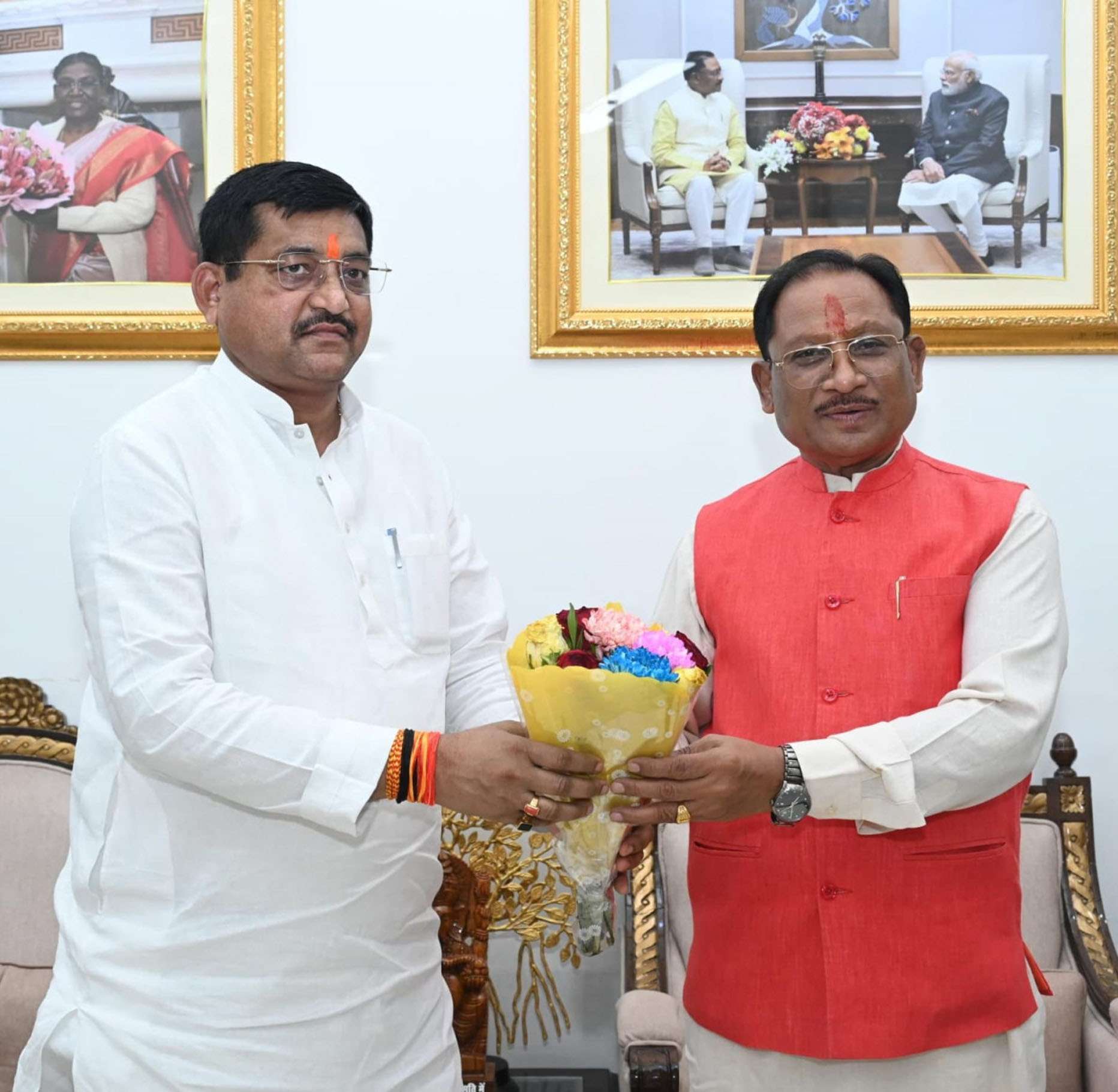 रायपुर। मुख्यमंत्री विष्णुदेव साय से उनके निवास कार्यालय में उत्तरप्रदेश सरकार के राज्यमंत्री जलशक्ति विभाग रामकेश निषाद ने सौजन्य मुलाकात की। मुख्यमंत्री श्री साय ने छत्तीसगढ़ प्रवास पर आए श्री निषाद का राज्य में स्वागत करते हुए उन्हें बस्तर आर्ट का प्रतीक चिन्ह और बस्तर पंडुम की पुस्तिका भेंट की।