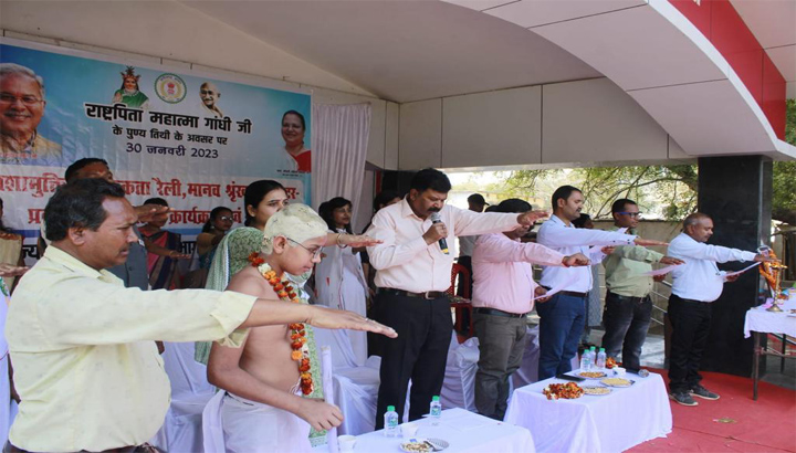 महात्मा गांधी की पुण्यतिथि पर किया गया कार्यक्रम ‘नशामुक्त धमतरी’, बच्चों एवं शिक्षकों ने मानव श्रृंखला निर्माण कर नशा मुक्ति का दिया संदेश January 30, 2023 No Comments