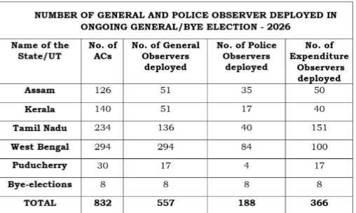 पांच राज्यों/केंद्र शासित प्रदेशों के विधानसभा चुनावों और उपचुनावों के लिए 1,111 केंद्रीय पर्यवेक्षक तैनात March 18, 2026 No Comments